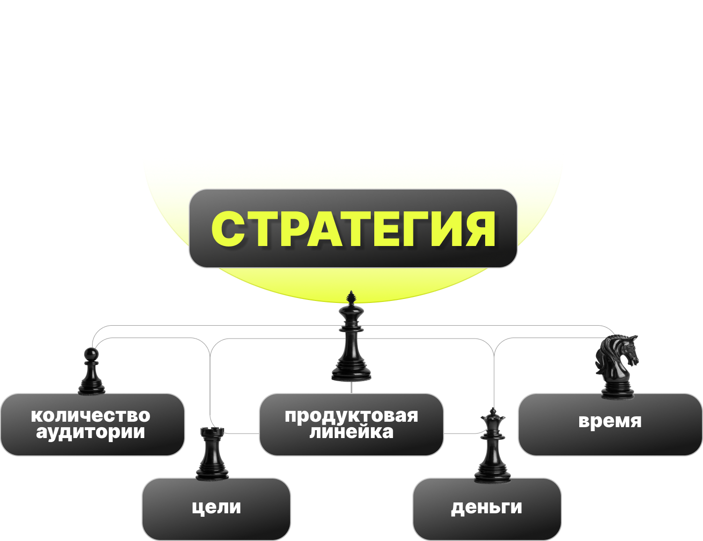 Стратегия - это выбор направления своего развития в соцсетях исходя из своих целей и активов, которые имеются на данный момент (количество аудитории, наличие продуктовой линейки, денежных / временных ресурсов и т.п.)
