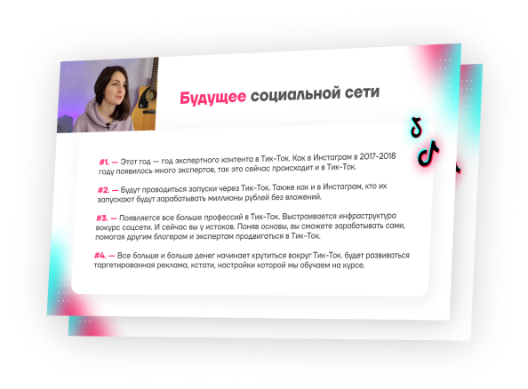 Вероятность того, что вы будете зарабатывать на Тик-Ток близится к 100%, при условии, что вы принимаете активное участие в клубе и выполняете домашние задания. Но результат в любом случае зависит от вас и ваших действий. Даже ТОПовые ВУЗы, такие как МГУ, ВШЭ, РЭШ, не гарантируют вам трудоустройство и заработок, потому что любая образовательная организация даёт вам знания и инструменты. А как вы их будете применять - зависит от вас.